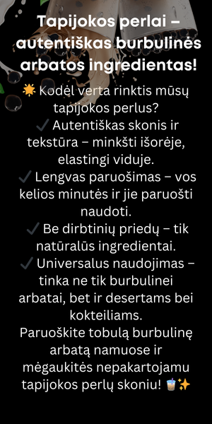 Paruoštus tapijokos perlus galite naudoti prie savo mėgstamos arbatos, o ją pagardinus šlakeliu pieno ir/ar ruduoju cukrumi - ši arbata taps Jūsų mėgstamiausia!